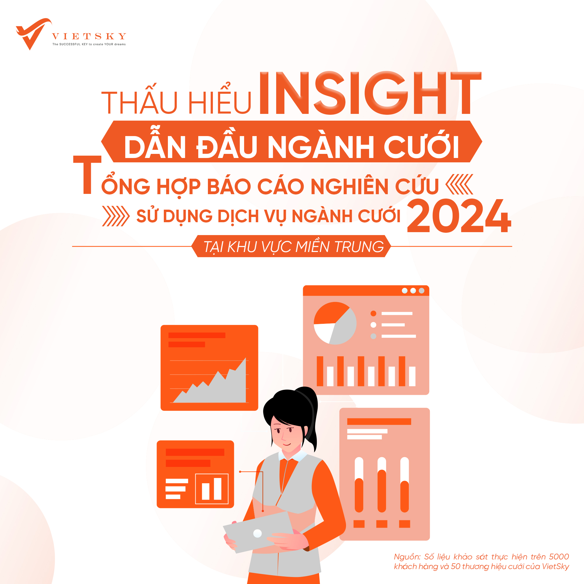 Báo cáo thị trường ngành cưới miền Trung được VietSky Agency Marketing thực hiện. Số liệu khảo sát trên 5000 khách hàng đến từ hơn 50 thương hiệu cưới đối tác. Ngoài ra, kết hợp thêm các số liệu thu thập tại bàn và phân tích insight từ hệ thống quản trị VietSky. Dưới đây là các đặc điểm chính về thị trường do VietSky tổng hợp.
